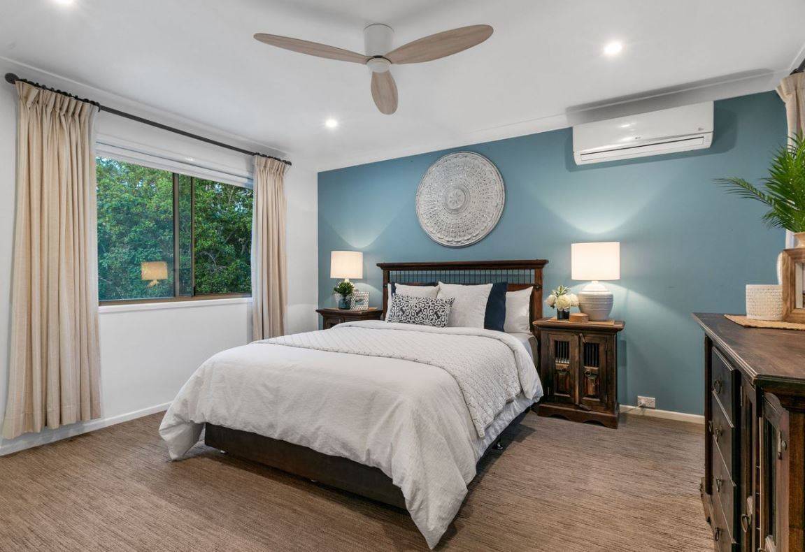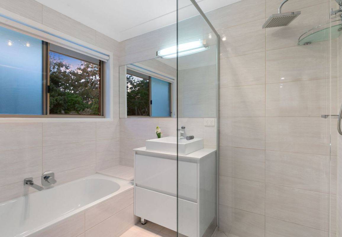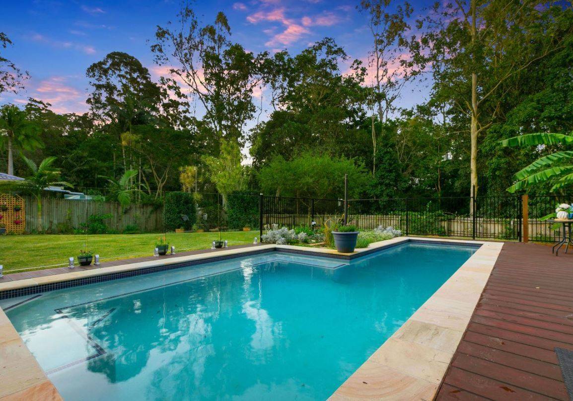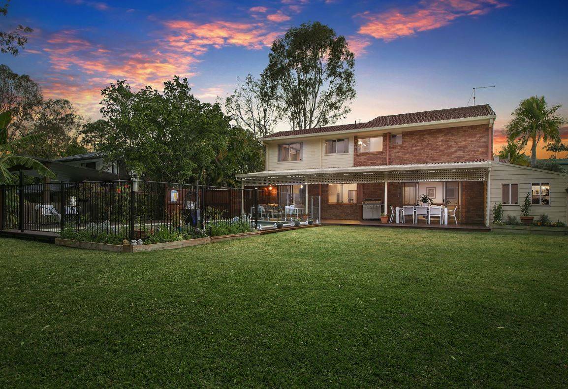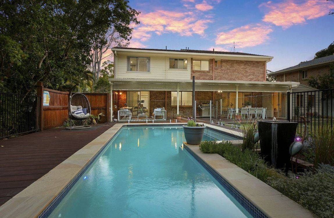 Upstairs, you'll find four air-conditioned, generously sized bedrooms, including a private master suite with a renovated ensuite and garden views. An outdoor entertainment area boasts a generous porch leading to a large garden with a private fireplace/BBQ area. The garden includes a private gate opening onto quiet bushland, where you might even spot a koala, and abundant birdlife, such as kookaburras and parrots.