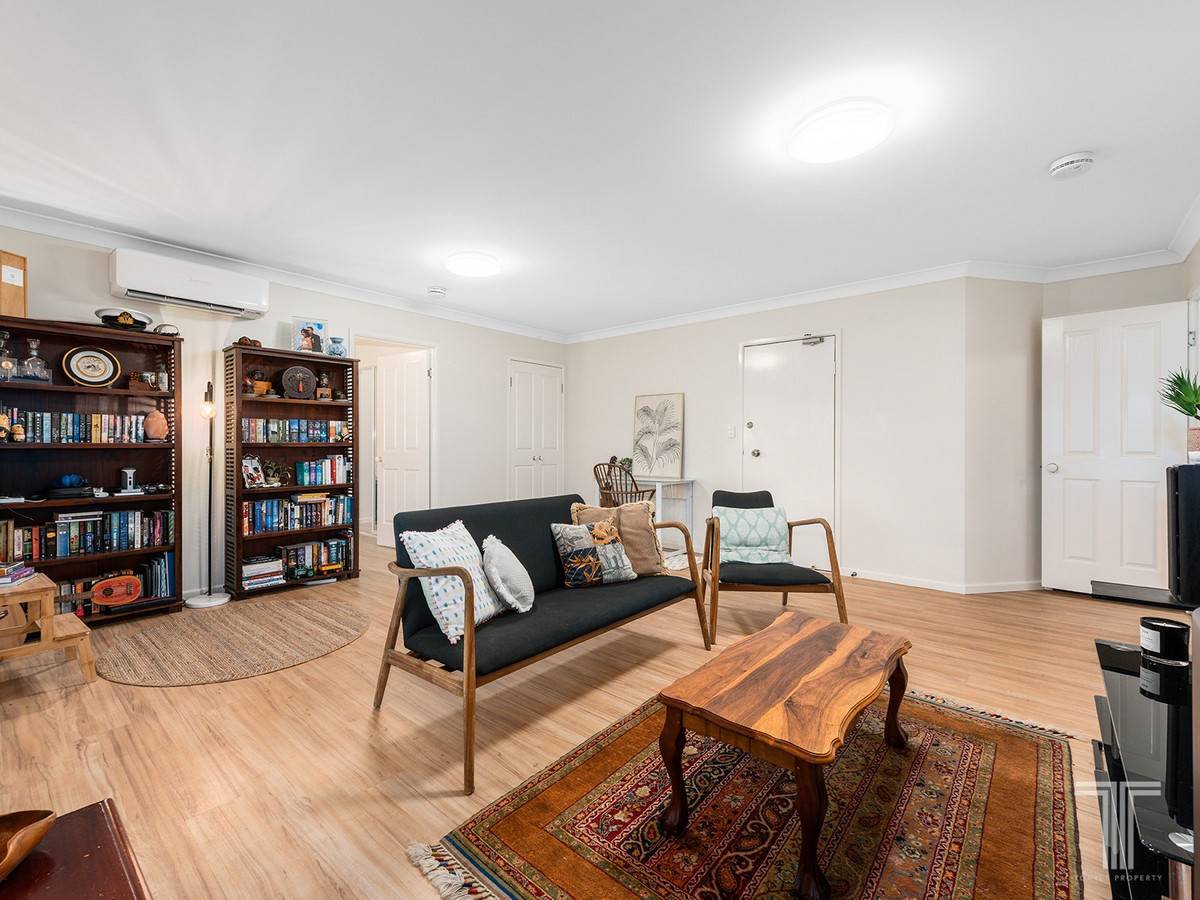 The living, kitchen and bedrooms are adorned with neutral tones and dimmable lights to create a homely ambience and have been recently updated with new floors, light fittings, air-conditioning, kitchen appliances and freshly paint throughout.