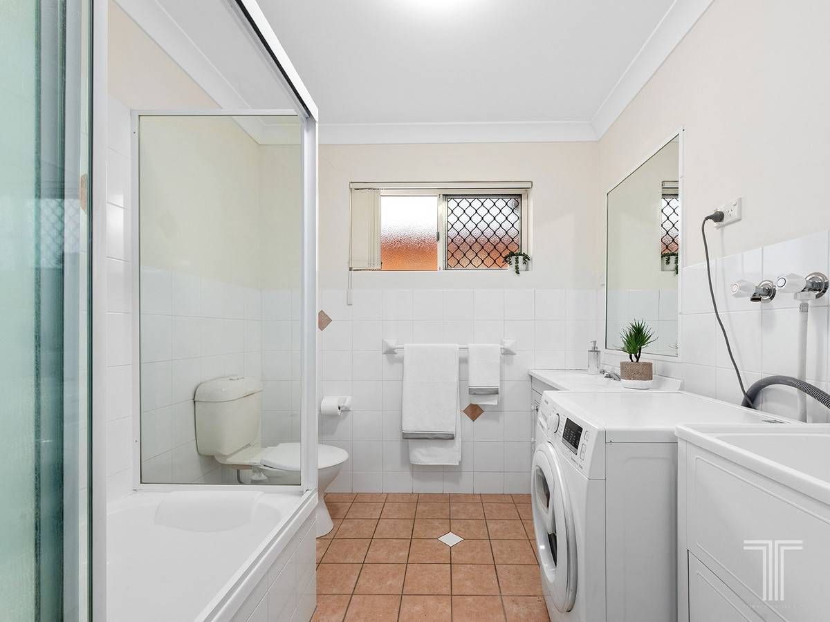Hosting two bedrooms, both include air-conditioning and built-in robes. While the master bedroom features balcony access and an ensuite, a second bathroom with laundry services the rest of the unit.