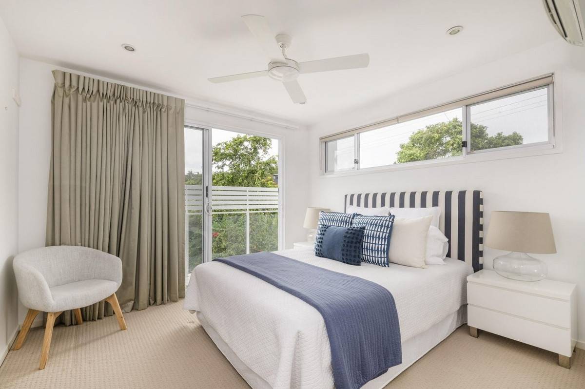 As a quiet retreat, the master suite extends out to a private balcony enjoying leafy outlooks and features air-conditioning, a walk-in robe and ensuite.