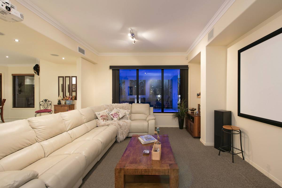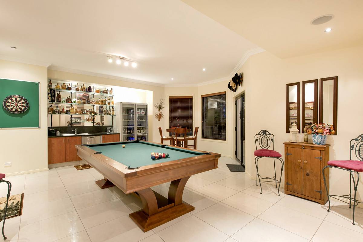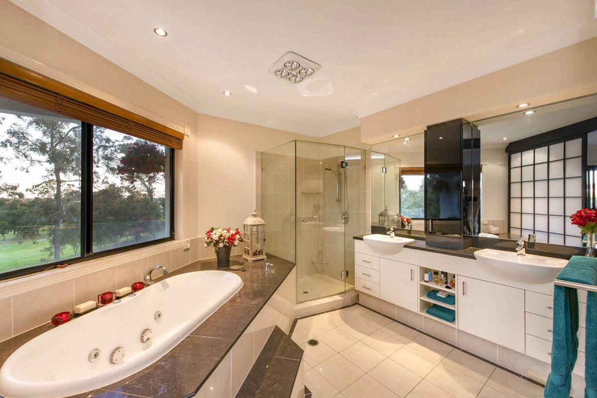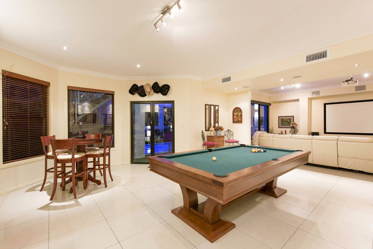 Located downstairs, the lower level features three private entries and presents the option to separate from the main house. Boasting a spacious rumpus room and wet bar with dishwasher, commercial fridge and room for a pool table, this retreat adjoins the media room. Open planned and light filled, the area enjoys views across the enviable pool area and tree-lined vistas across the course. The swimming pool and spa feature solar and gas heating.