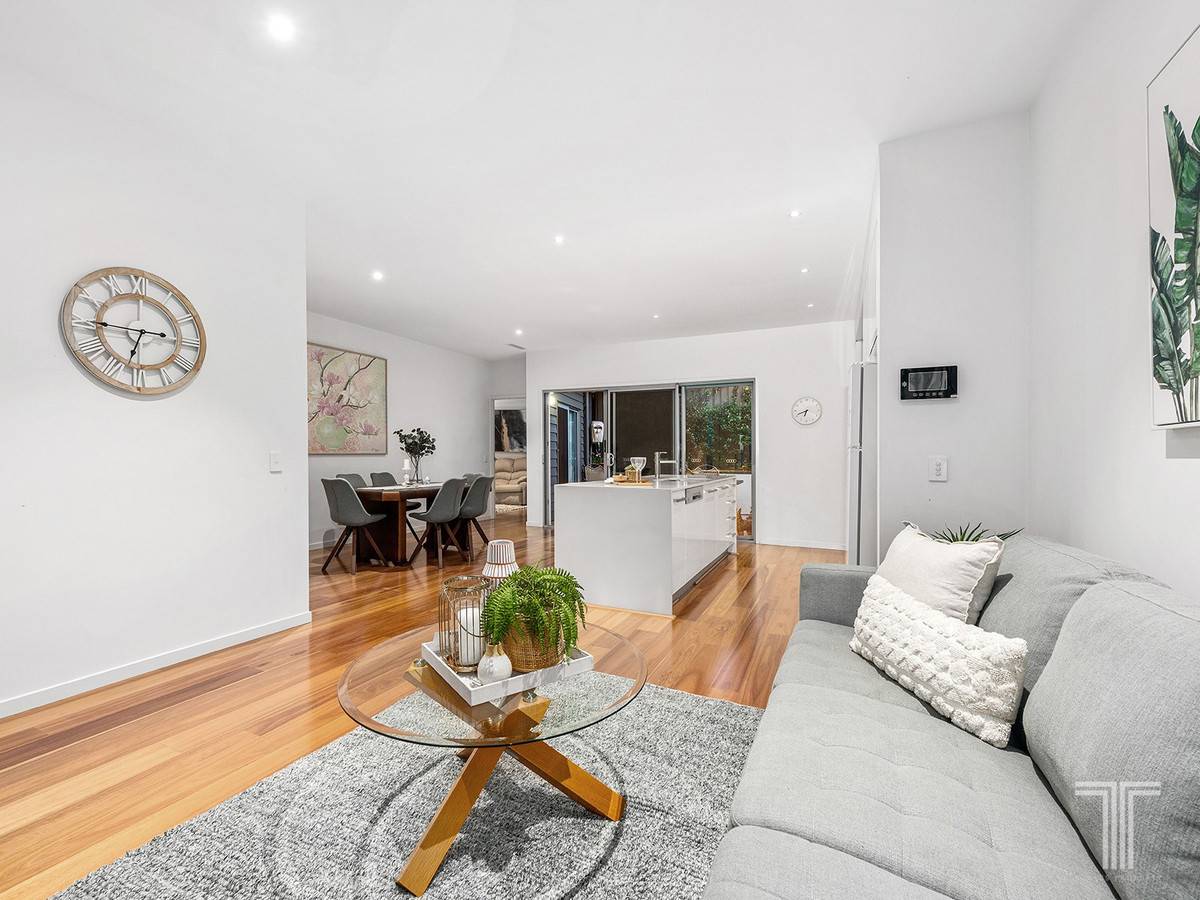 Stepping inside, you are immediately greeted by gorgeous interiors and a modern design. Adorned with clean lines, polished timber floors and downlights, the living and dining area is effortlessly open, spacious and filled with natural light.