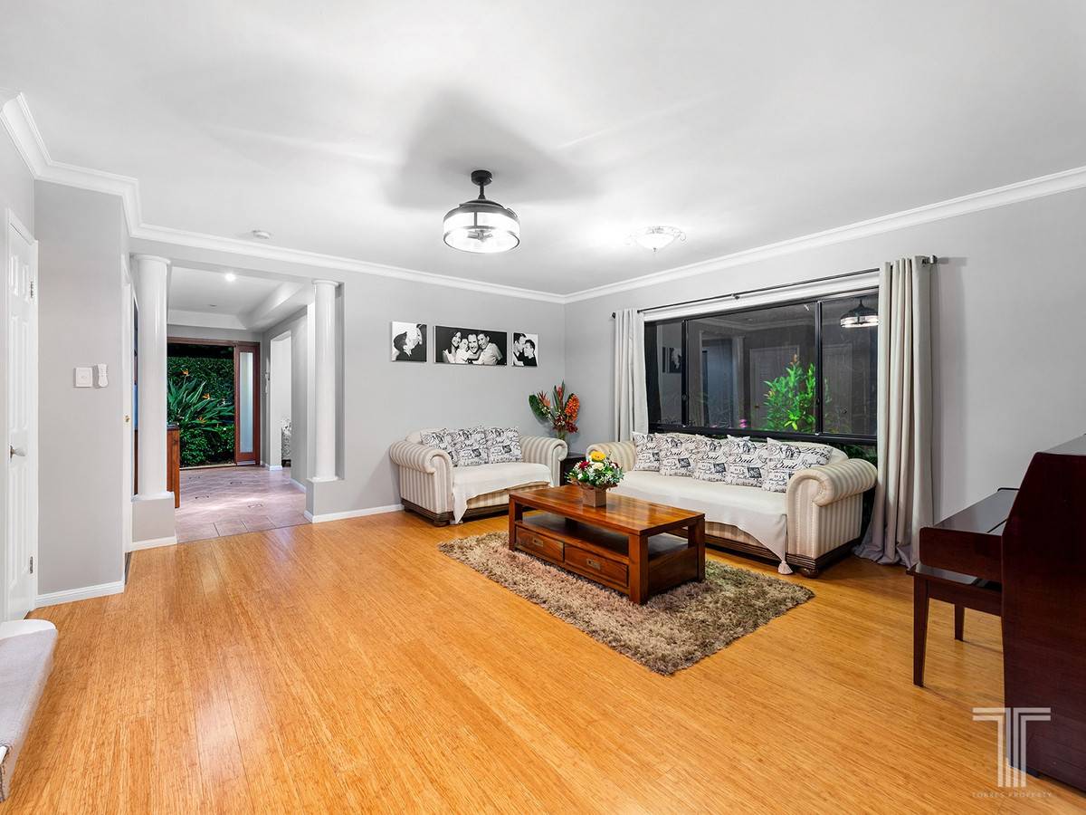Set behind a lush and leafy garden, the home enters into a formal lounge and dining room and a separate living and meals area. Each offering a relaxed setting to unwind and entertain, these distinct living zones ensure every family member has their own space.