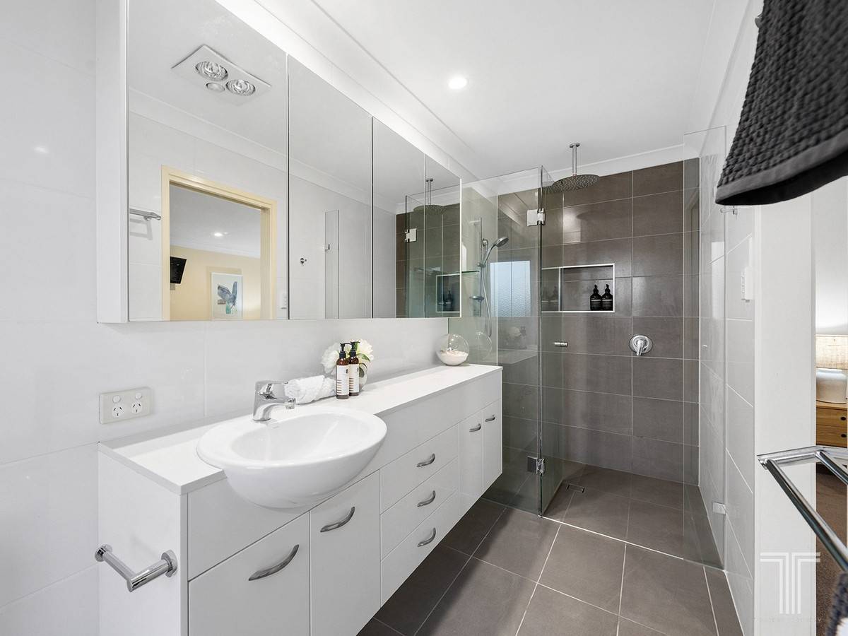 Travelling up the signature exposed staircase to the upper floor, you will find three generous bedrooms, a family bathroom and a double study perfect for kid's homework time. Enjoying leafy views and elevated outlooks, the master suite includes a walk-in robe and private ensuite.