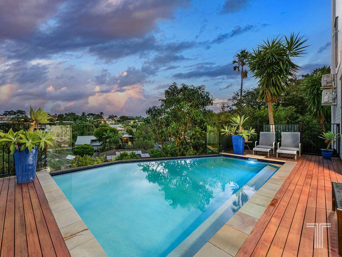 Positioned downstairs, a rumpus room offers additional living space and accompanies a bedroom, bathroom and office. Leading out onto a second exquisite deck and in-ground pool, there is endless space to enjoy poolside parties or a relaxing swim.