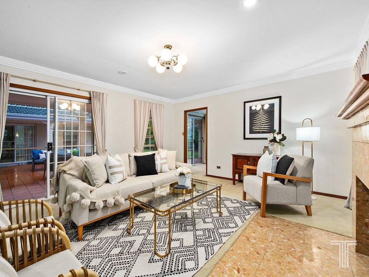 Boasting a flowing floor plan and multiple living spaces, the ground floor features stunning high ceilings, banks of glass and a wealth of natural light. Warm and inviting, the formal lounge room is centered around a grand stone fireplace. Leading into the formal dining room and the open plan family and meals area, these living zones connect seamlessly to the well-appointed kitchen, adorned with rows of timber cabinetry, large bench tops and stainless steel appliances.