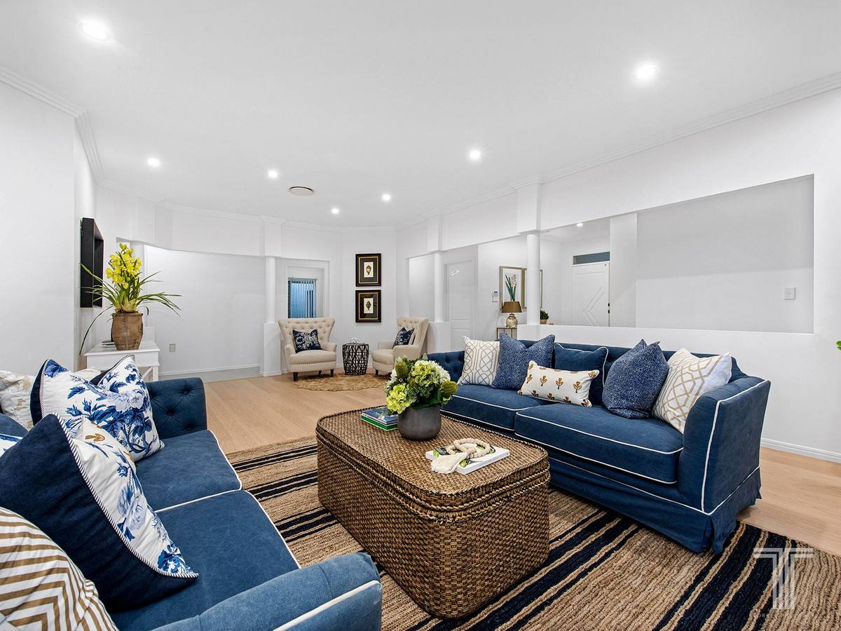 Entering the home, you are greeted by endless open plan living and dining areas. Boasting high ceilings and shutters throughout, this well-designed layout hosts a grand formal lounge along with an additional separate living and dining area flowing off the beautiful kitchen.