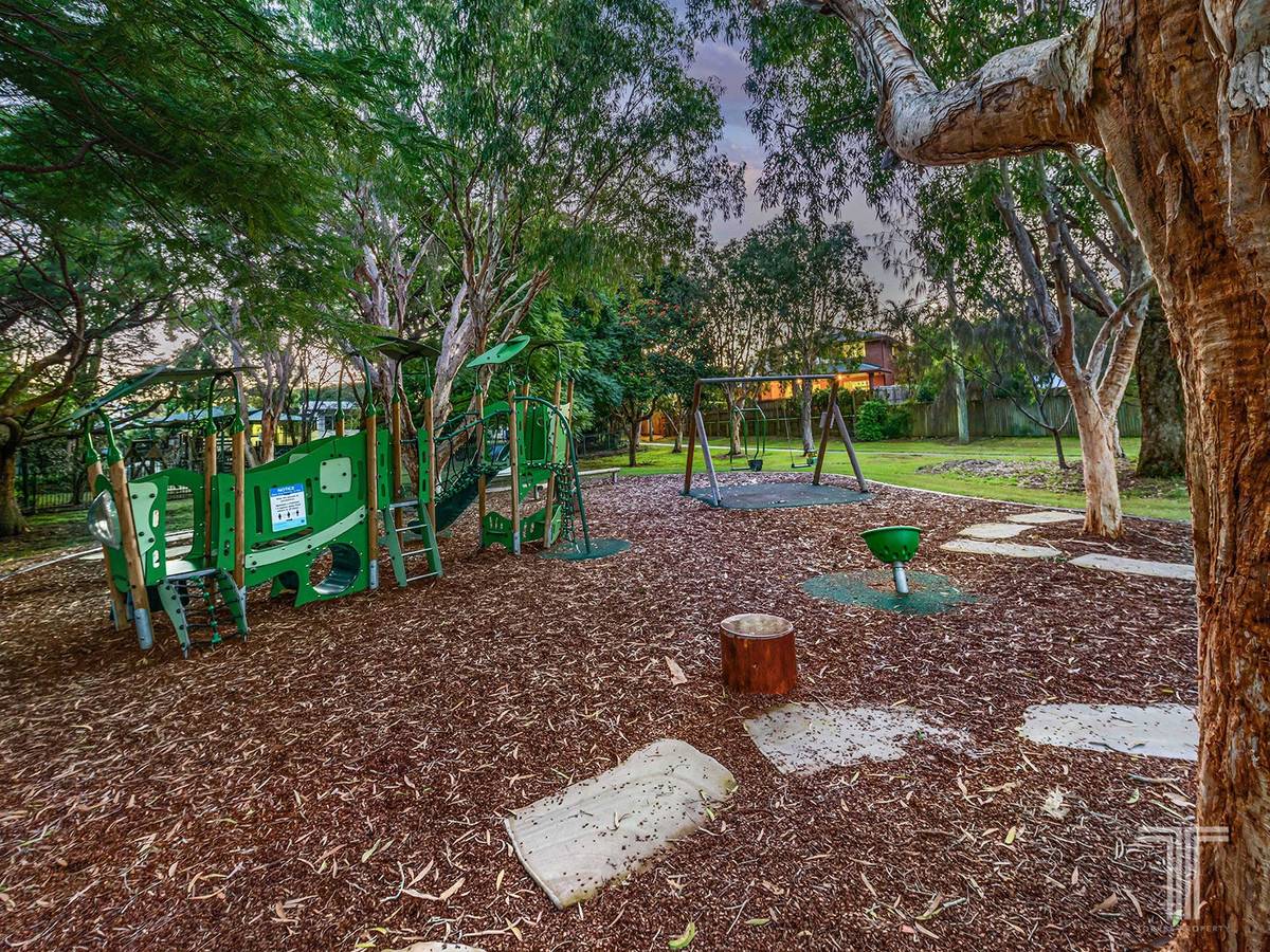 Positioned next to Garth-Webb Park, this home is only 2 minutes from city bus stops, 3 minutes from Lavarack Park, 5 minutes from Lunga Street shops and walking distance to the local kindergarten, Camp Hill Primary School, St Martin's Primary School and San Sisto College. A family-friendly setting offering an exquisite lifestyle, residents are just 5 minutes' drive to Westfield Carindale, Martha Street precinct, Coorparoo Square and 15 minutes to the CBD.