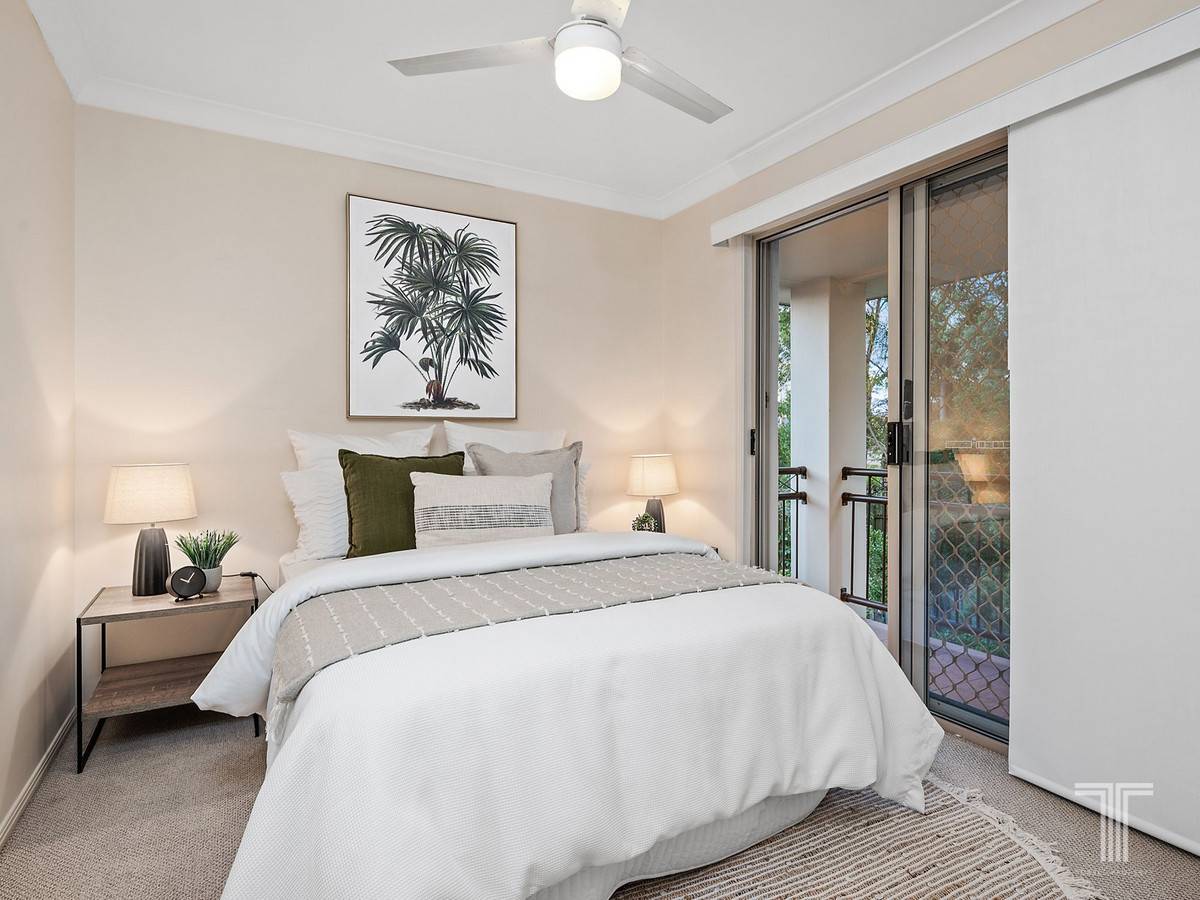 The townhouse's top floor hosts three well-sized bedrooms, including an air-conditioned master with a walk-in robe and ensuite. Serviced by the family bathroom, the second bedroom also features a walk-in robe, while the third bedroom boasts a built-in robe and private balcony gazing over the courtyard and gardens below.