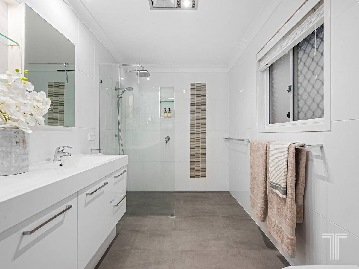 Finalising the lower level is a guest bedroom/study, while upstairs houses a further four generous bedrooms. A parents' retreat, the master suite features his and her walk-in robes and a modern ensuite adorned with dual vanities and a semi-frameless shower. Servicing the additional bedrooms is a newly renovated bathroom boasting double vanities and a deluxe bathtub.