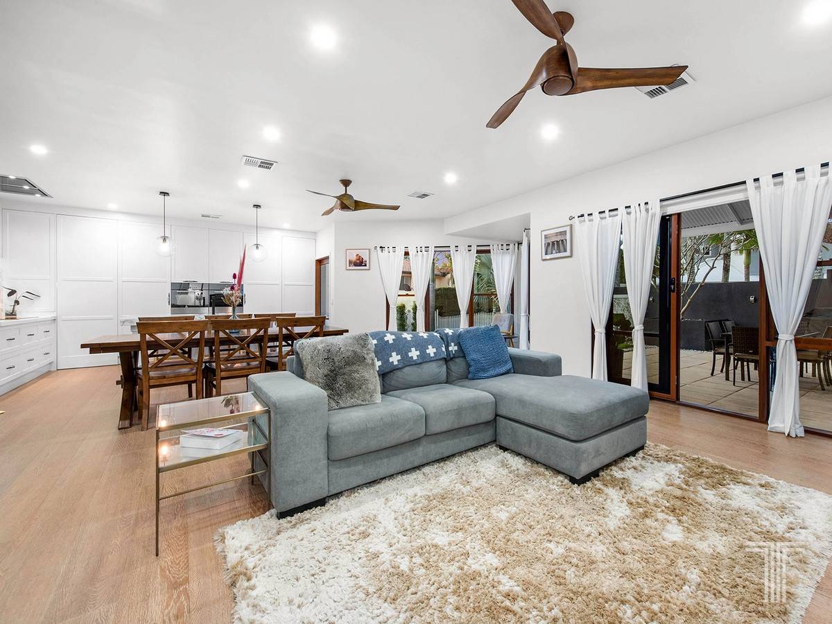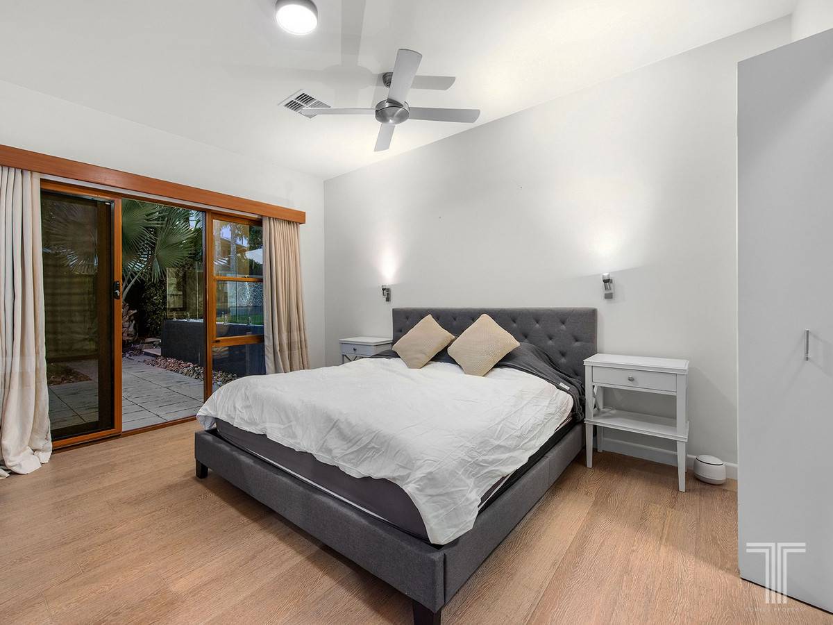 Hosting a myriad of outdoor spaces, the interiors extend out to a private timber deck, alfresco pavilion and a sunlit patio. Framed by beautifully landscaped lawns, a tranquil water feature and tropical palm trees, residents will delight in entertaining family and friends here.