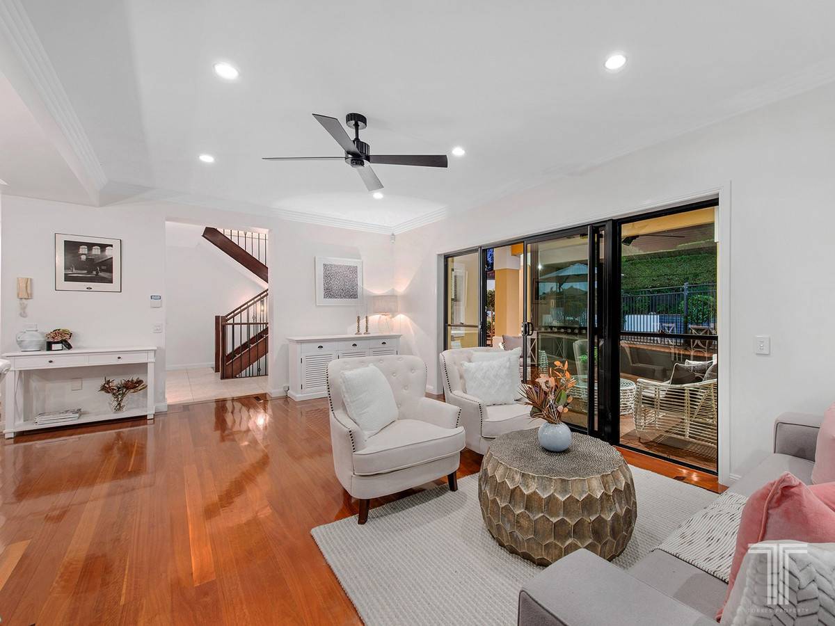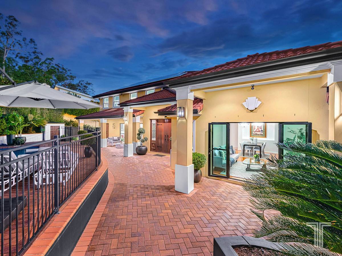 Positioned on a sprawling 1020sqm, the home is framed by stunning gardens, including flowering jacarandas, flame trees, gardenias, purple tibouchinas and an orange frangipani.