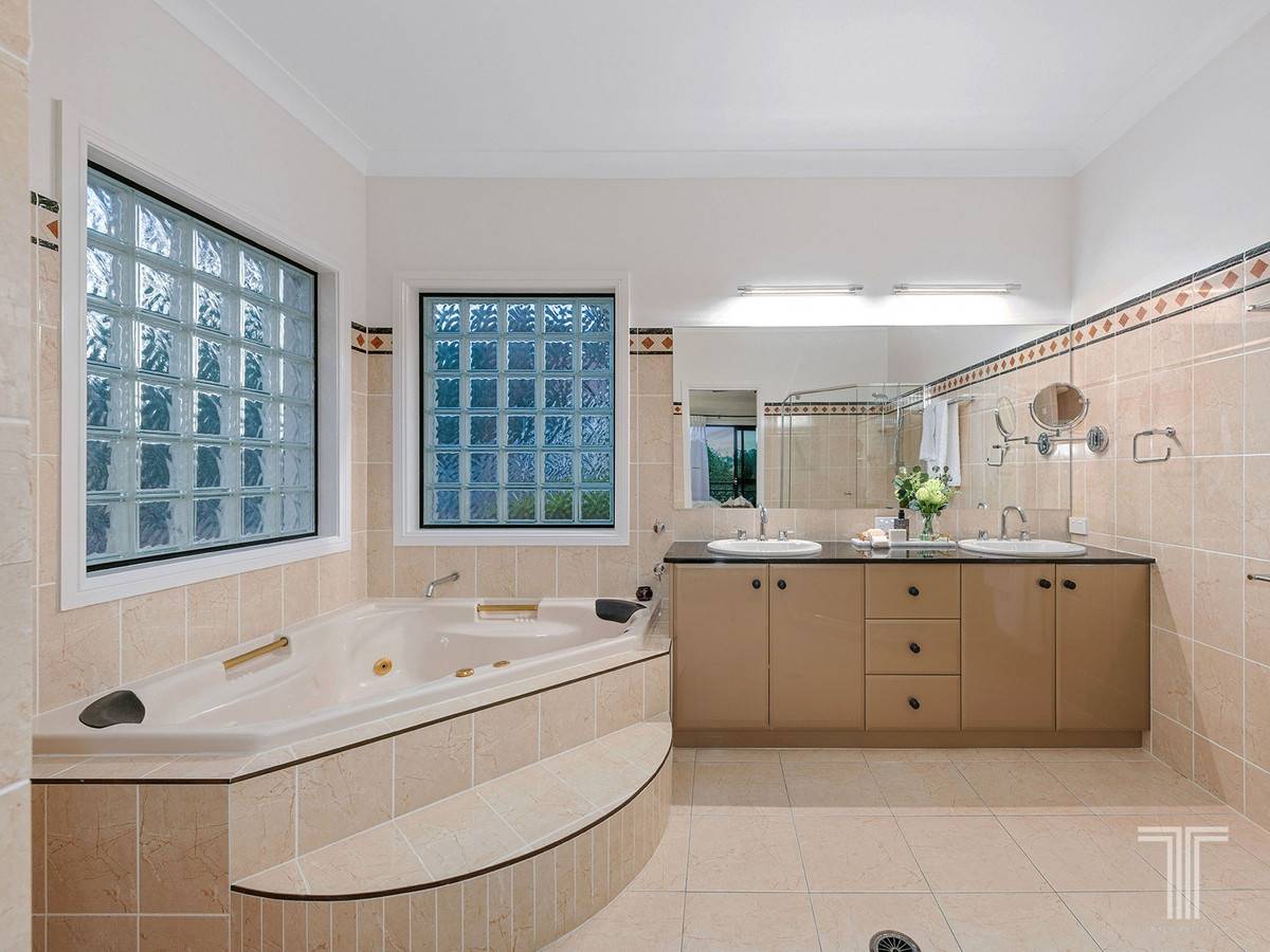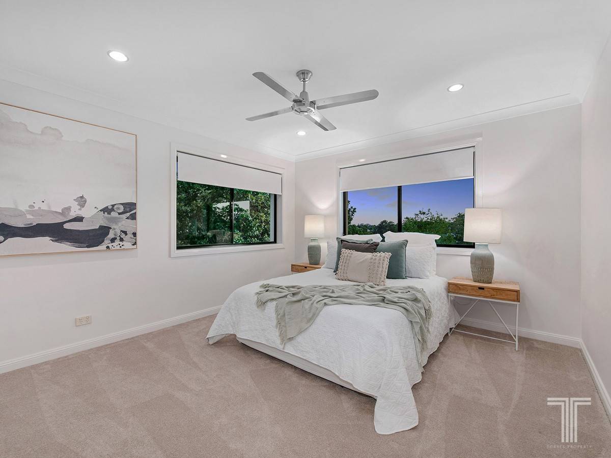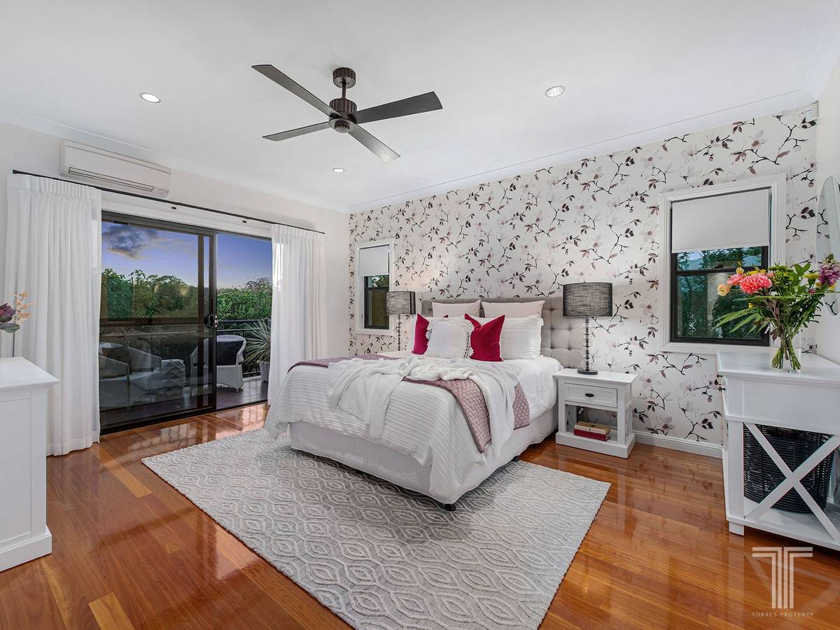 Hosting five generous bedrooms and three bathrooms, the home is newly renovated by 83 Interiors and Styling and includes a tranquil parents' retreat with a Juliette balcony capturing summer sunsets and misty views across Mt Gravatt in the wintertime. The master bedroom also features an ensuite with dual vanities and a spa bath. Completing this layout is an office, which the current owner has happily run a business from for many years.