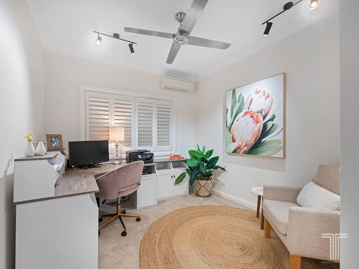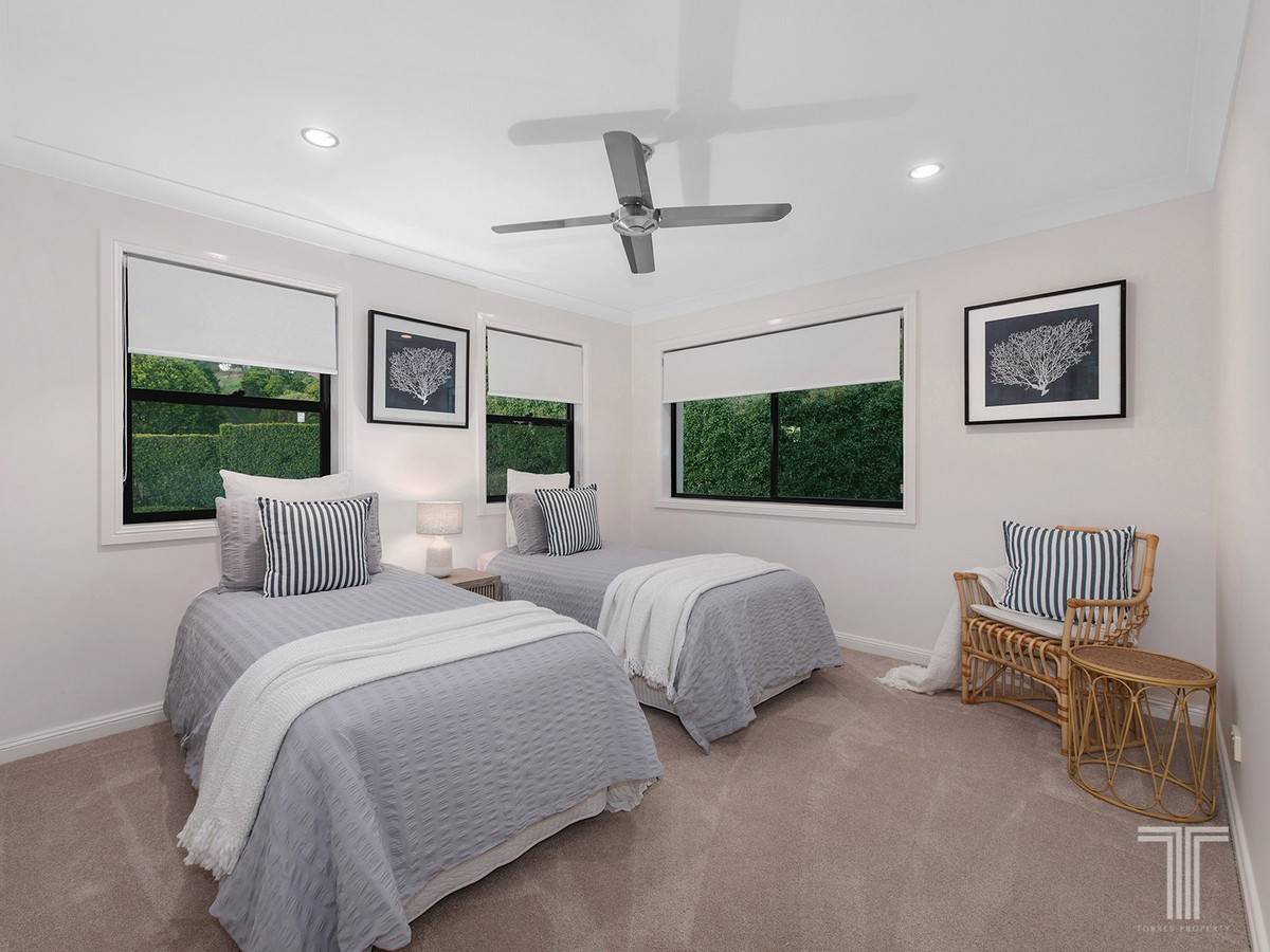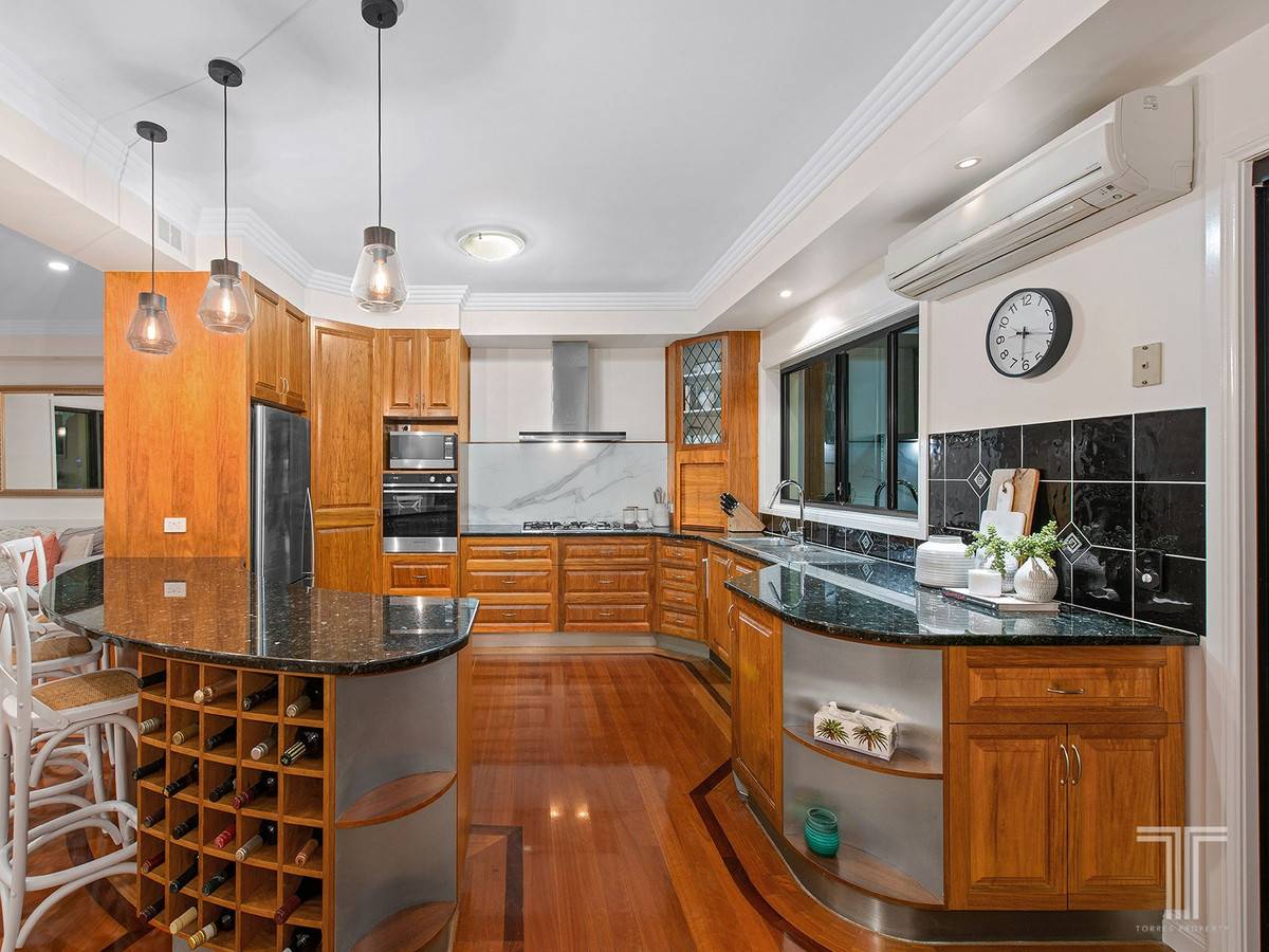 Hosting five generous bedrooms and three bathrooms, the home is newly renovated by 83 Interiors and Styling and includes a tranquil parents' retreat with a Juliette balcony capturing summer sunsets and misty views across Mt Gravatt in the wintertime. The master bedroom also features an ensuite with dual vanities and a spa bath. Completing this layout is an office, which the current owner has happily run a business from for many years.