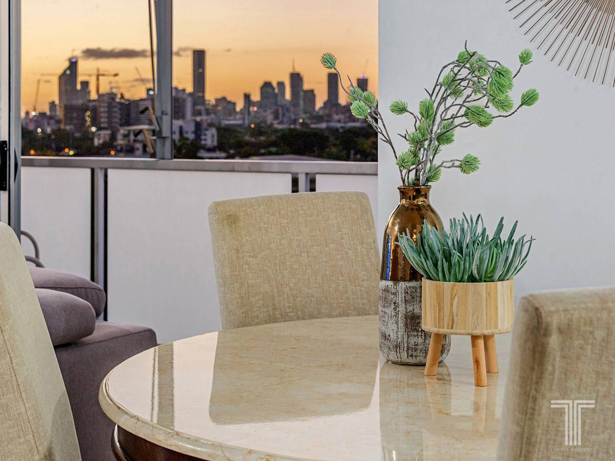 Unveiling an open design and air-conditioning, the unit opens into a light and airy lounge and dining area. Featuring large windows and a private balcony that frame your exquisite district views, you can relax inside or out while watching the sunset behind the city, and the evening lights transform the night sky.