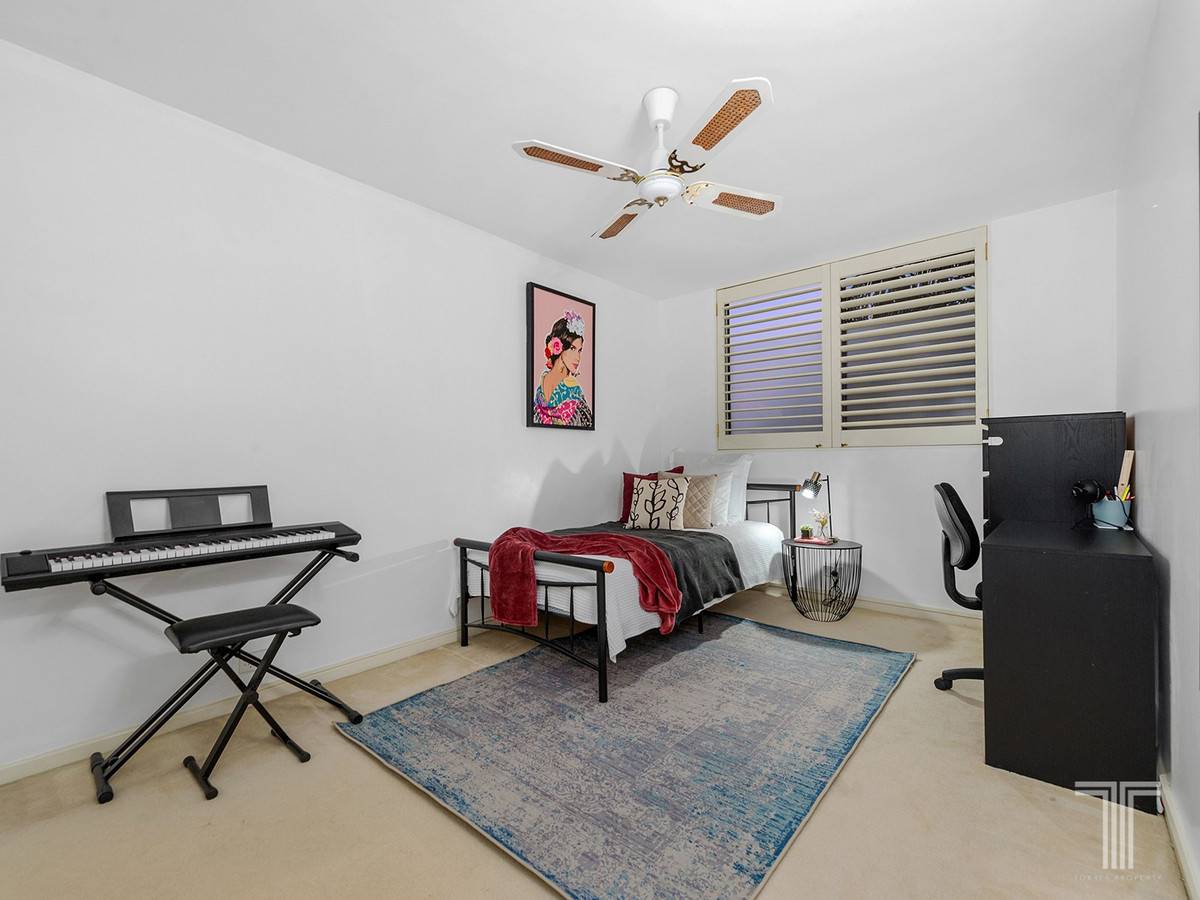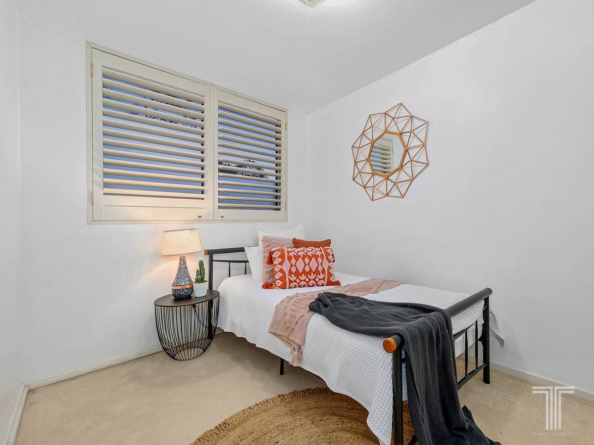 Hosting three bedrooms, all include built-in robes and two feature ceiling fans. Serviced by a modern bathroom with a walk-in shower, the unit is complete with a large separate laundry, plantation shutters throughout, an oversized garage and lift access.