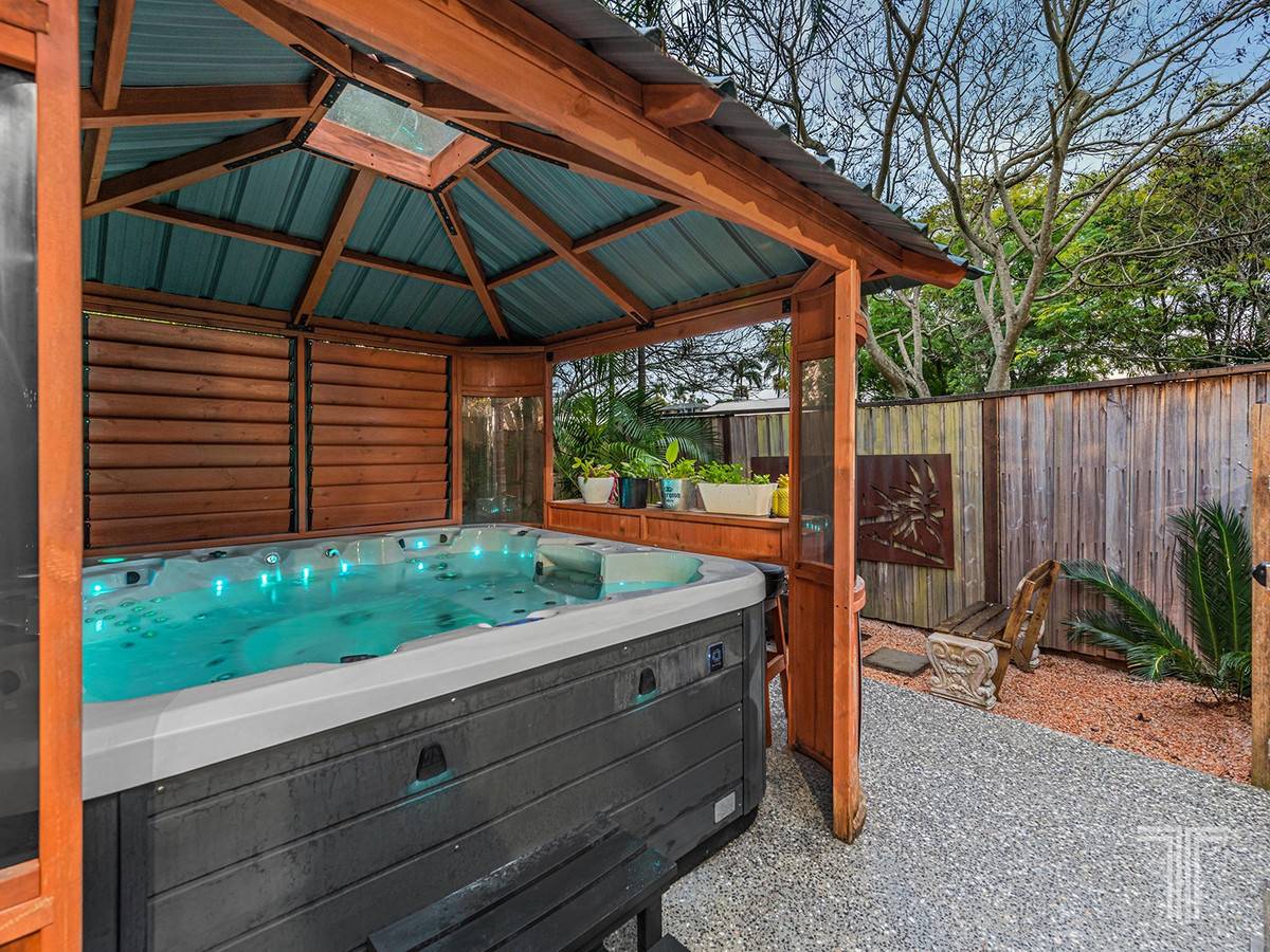 Adding a touch of resort-style luxury, the interiors flow out to an expansive timber deck. Boasting sun-soaked entertaining space, a built-in bar, TV connection and a relaxing spa, family and friends will adore this alfresco retreat. Presenting further room to unwind and host guests is a covered rear patio and generous backyard.