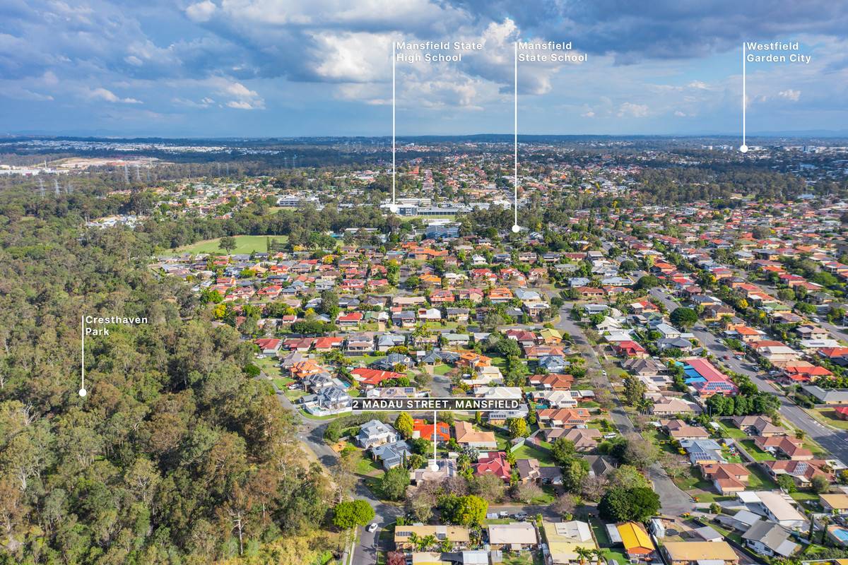 Only metres from Cresthaven Park and within easy walking distance to Mansfield State School and High School, this home offers family-friendly living just 10 minutes from Westfield Carindale and Garden City. Close to the Gateway and Pacific Motorways and 20 minutes from the CBD this parkside home has it all.