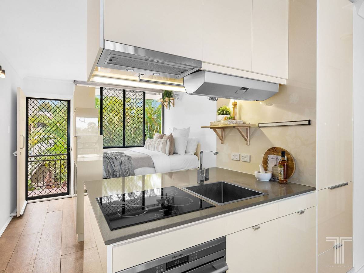 Perched by the river's edge and surrounded by beautiful parks and greenery, this studio apartment presents unrivalled living on the top floor of Highgate Hill's 'Riverpark'.