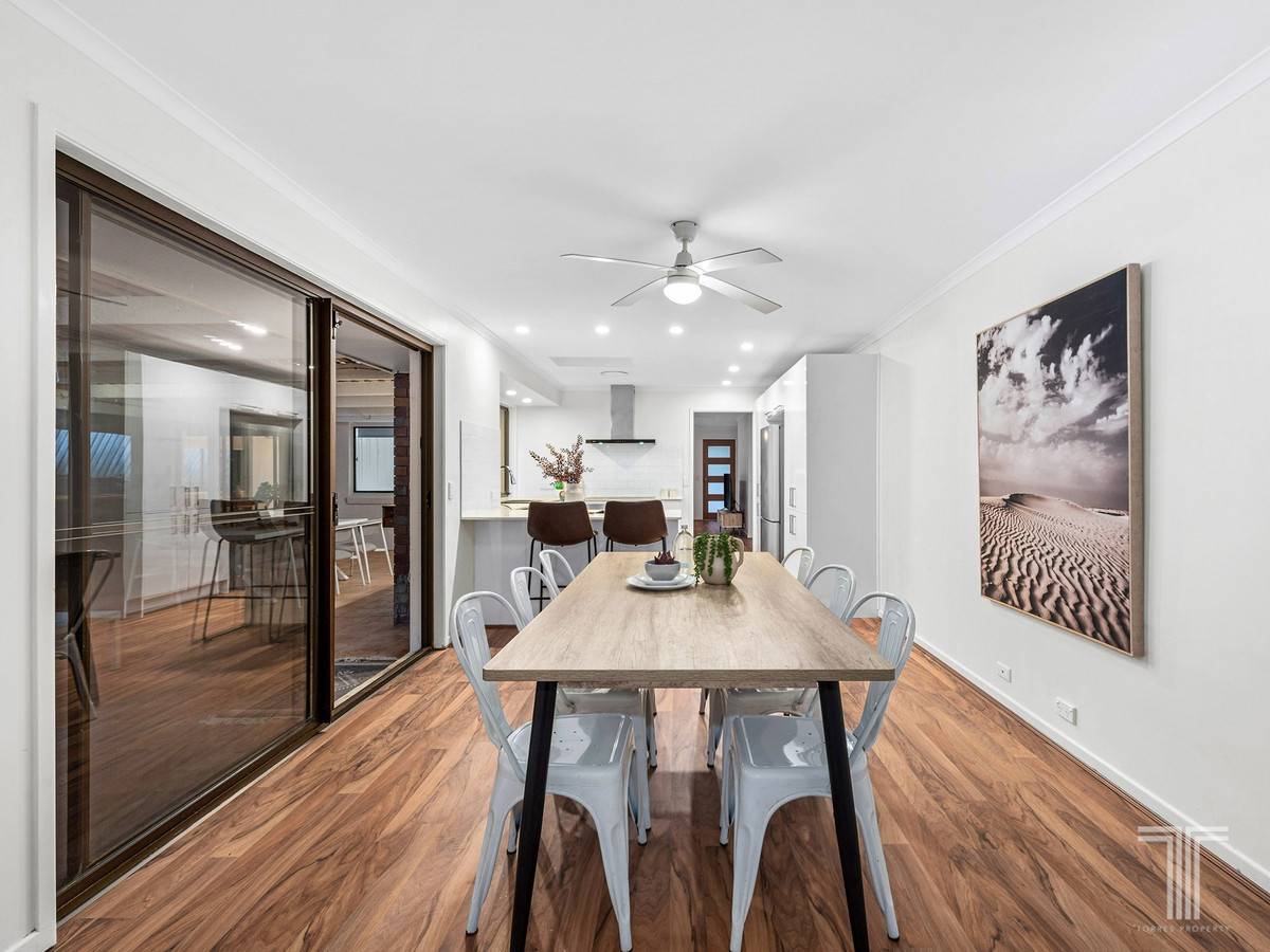 Greeting you with bright interiors and stylish laminate floors, the home enters the inviting lounge room and flows with ease into the open plan dining area and modern kitchen. Equipped with stone benchtops, gloss cabinetry, a Westinghouse 900mm cooktop and oven, and a Bosch dishwasher, this culinary setting has been well designed with a feature skylight and servery window for outdoor dining.