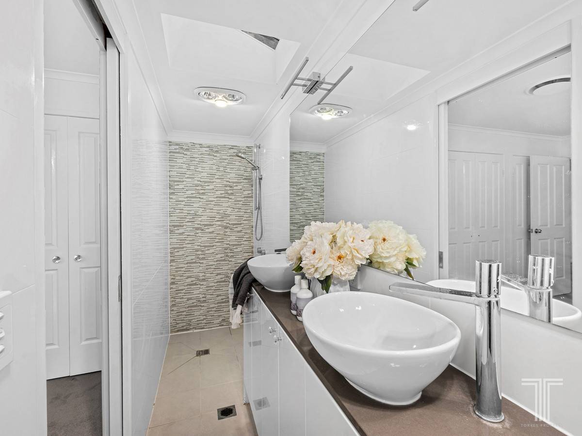 Hosting five carpeted bedrooms, the home includes a master with a built-in robe, modern ensuite and an adjoining retreat, ideal as a private study, nursery or living space. Three of the additional bedrooms include built-in robes, and a fourth features a walk-in robe and access to a two-way bathroom with dual vanities and a luxurious bath. Completing the house is an office with built-in storage and two-way entry, perfect for parents who work from home.