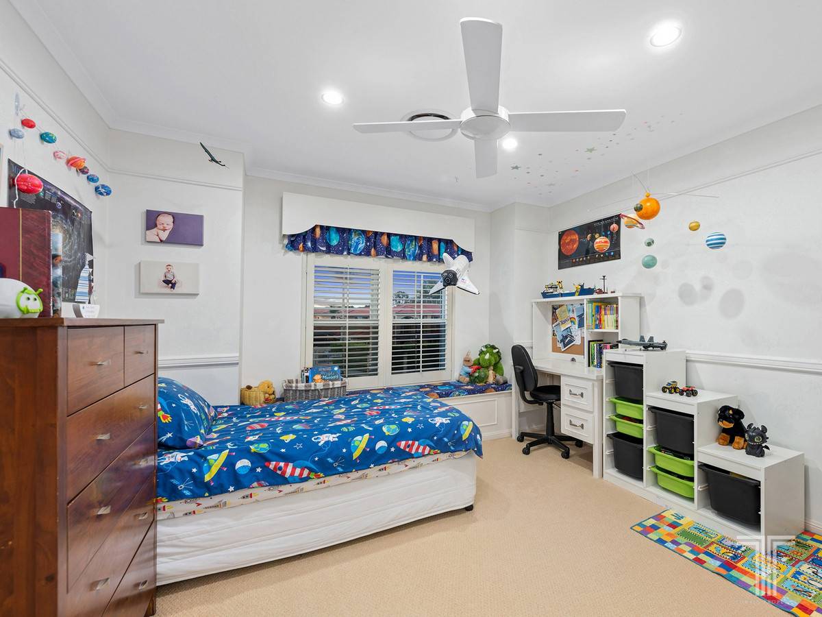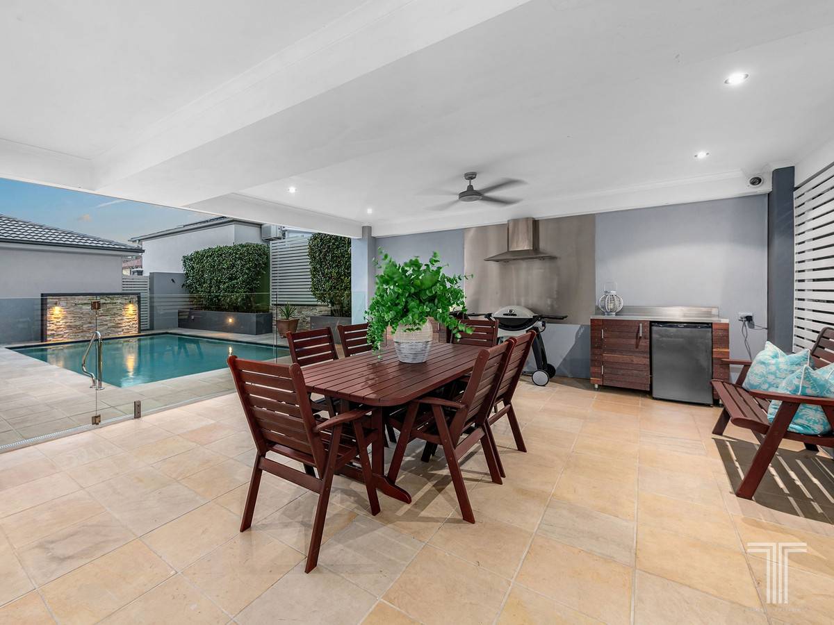Flowing out seamlessly via glass doors, the alfresco terrace offers a quiet oasis destined for year-round enjoyment. Impeccably appointed with ceiling fans, modern downlights and a BBQ area, this entertainer's retreat captures views over the sparkling pool and water feature. Ideal for hosting guests or relaxing with the family, parents and kids will also enjoy the large flat yard boasting plenty of room for a trampoline and backyard cricket.